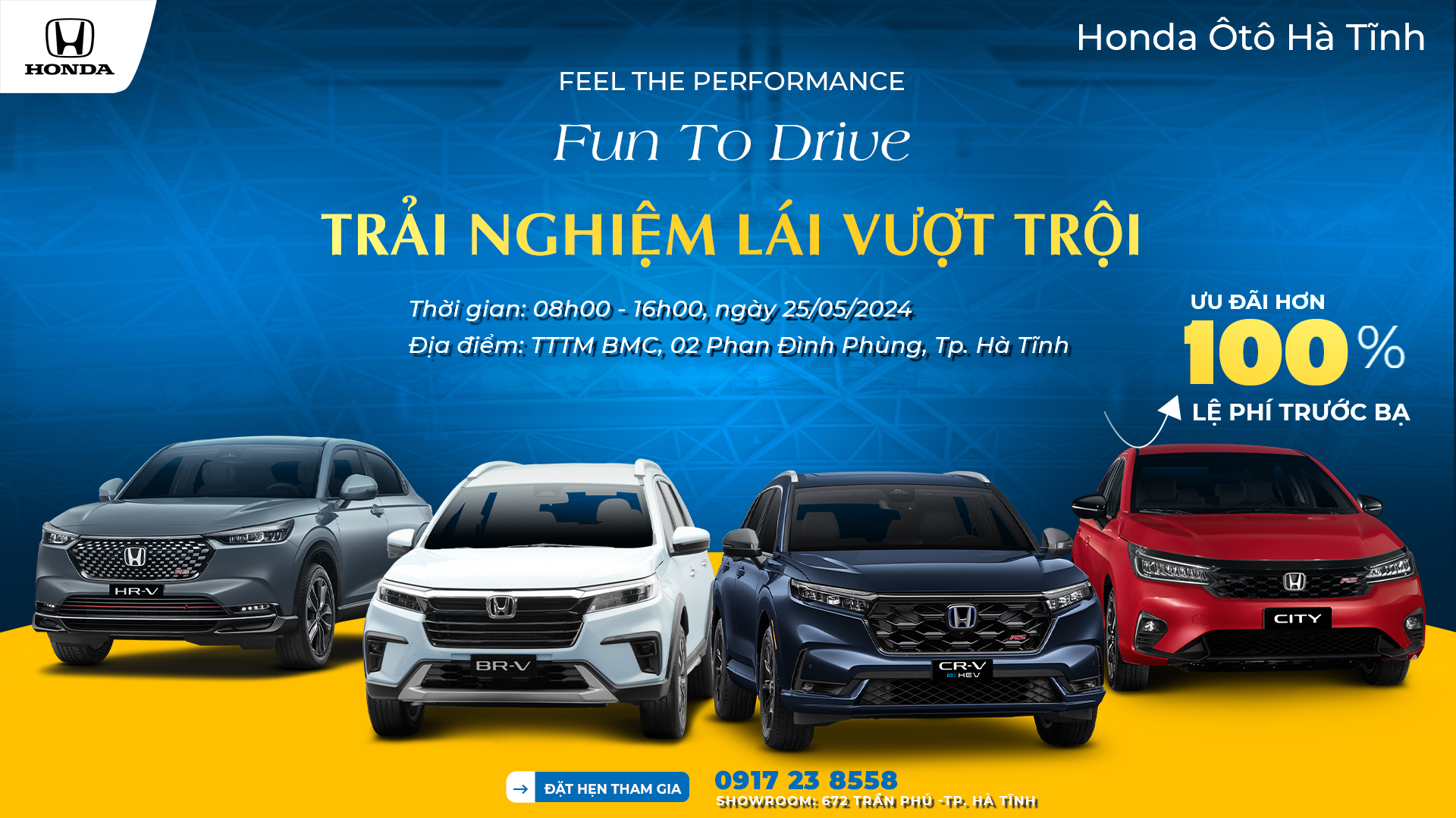 Feel The Performance là sự kiện lái thử của Honda Ôtô Hà Tĩnh mà các “Khách hàng yêu” Honda không thể bỏ qua để được thỏa sức trực tiếp cầm lái, khám phá các tính năng và tận hưởng cảm giác lái phấn khích trên những mẫu xe yêu thích nhất: