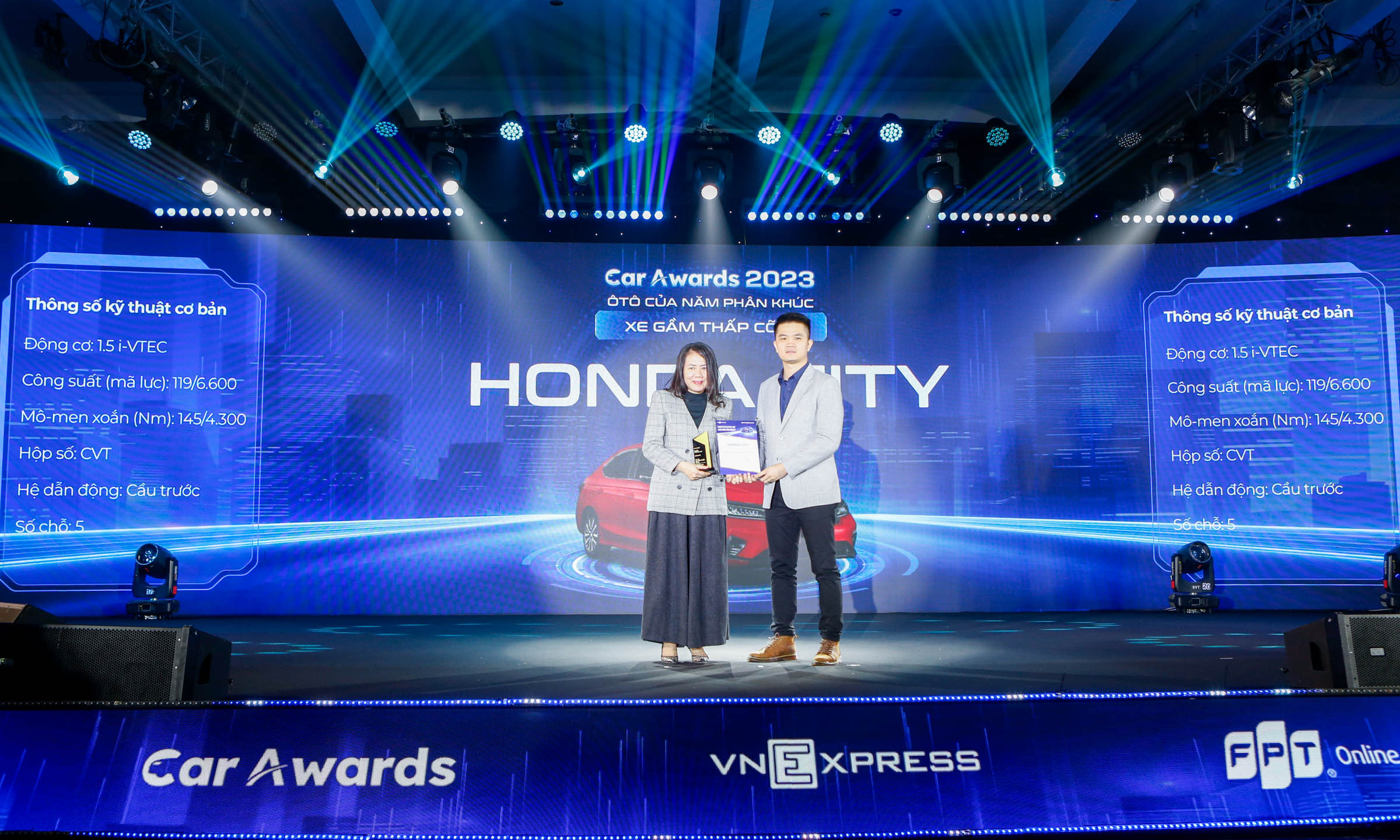 Tại Lễ công bố và trao giải “Ô tô của năm 2023” (Car Awards 2023) do báo VnExpress tổ chức, Honda CR-V vinh dự nhận Giải thưởng “Ô tô của năm” toàn thị trường và “Ô tô của năm” phân khúc xe Crossover cỡ C, Honda City vinh dự nhận Giải thưởng “Ô tô của năm” phân khúc xe gầm thấp cỡ B do Hội đồng chuyên môn, độc giả và người dùng nhiều kinh nghiệm trong lĩnh vực ô tô bình chọn.