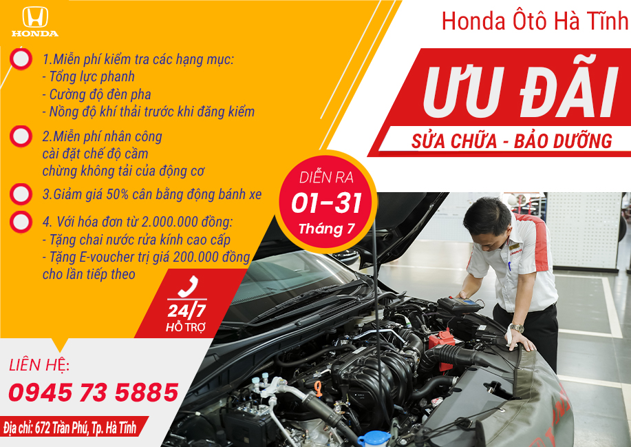 Khuyến Mãi Dịch Vụ Sửa Chữa – Bảo Dưỡng Tháng 7/2023 Honda Ôtô Hà Tĩnh...